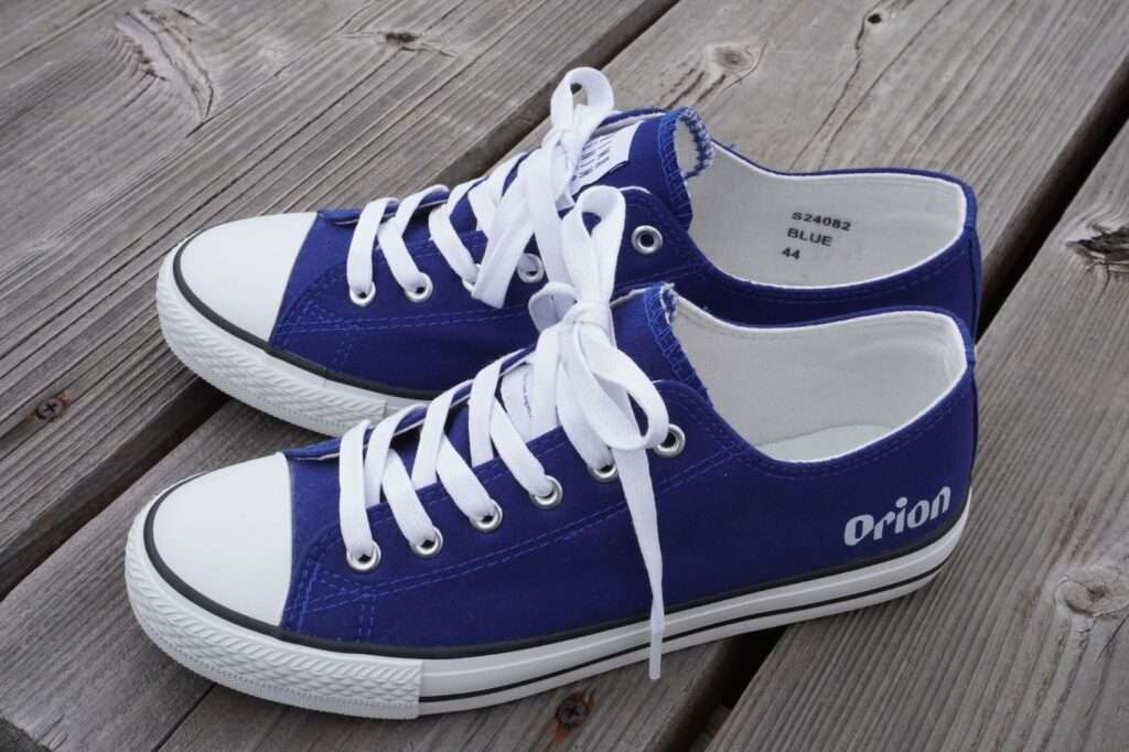 コラボスニーカーのアッパーには、オリオンビールのブランドカラーである鮮やかなブルーを使用。地元の産業廃棄物が、地域の誇り(プライド)を象徴するファッションアイテムへと鮮やかに昇華されている。