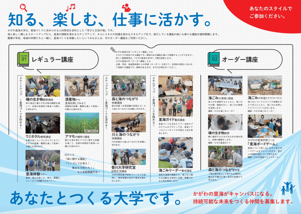 私たちは「かがわ里海大学」に二つの大きな柱を置いています。