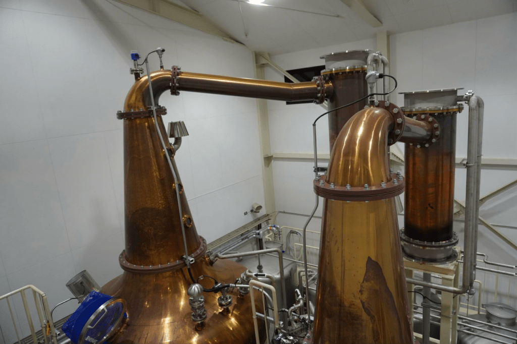 アルコール発酵を終えたもろみは、銅製の蒸留器で濃縮され、アルコール度数62〜63%の原酒となって樽に詰められる。ここからは自然に委ねて熟成が進んでいく。静かな森の中で、季節の移ろいがゆっくりと液体に溶け込んでいく。「時間」と「木」と「水」が重なり合い、グラスの中の一杯へと姿を変えるプロセスそのものが、この土地のストーリーだと言える。