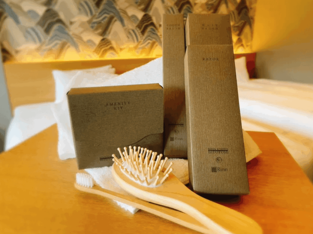 竹や木・再生プラスチックなどの素材を使用したアメニティを提供し、従来のプラスチック製品から持続可能な素材への転換を図っています。