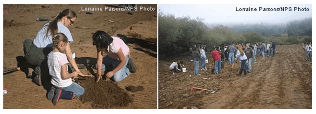 アメリカ・カリフォルニア州ポイント・レイズ国立海岸では、学校グループが湿地再生プロジェクトに参加。