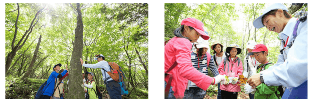 サントリーが20年以上継続している「水育」は、親子で参加できる日本を代表する環境教育プログラムです。「森と水の学校」では、白州(山梨)、北アルプス(長野)、奥大山(鳥取)、阿蘇(熊本)の4拠点で、専門講師と共に水源林を探検します。