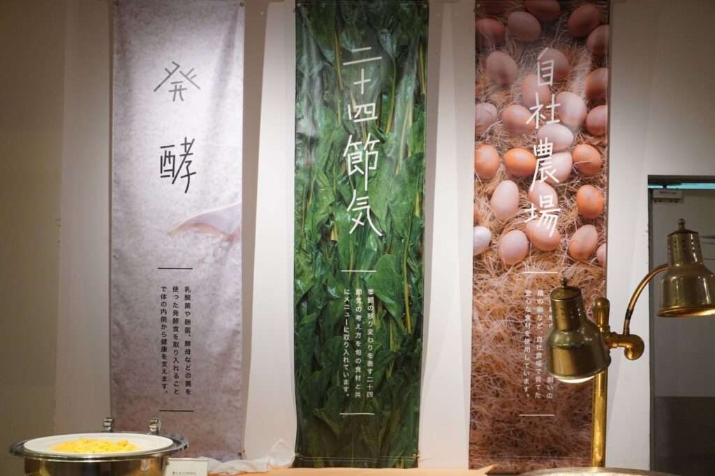 食においては、「発酵」「自社農場」「二十四節気」を柱に掲げる。加物を排除し、出汁取りから始める手作りの姿勢を貫く。調味料も厳選し、白砂糖の代わりにきび糖、甘酒、みりんなどで優しい甘みを表現している。