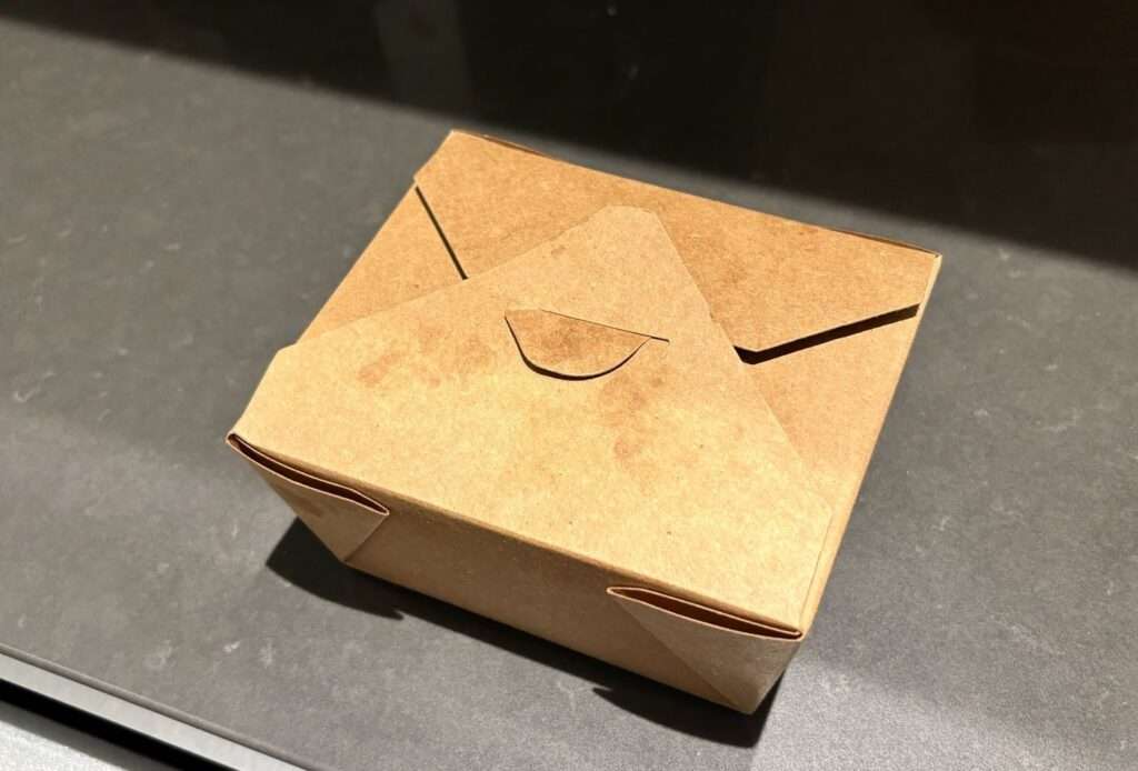 ボリューム満点の食事を食べきれなかった際、レストランスタッフが快く渡してくれた持ち帰り用の箱も、同じくBPI認証を受けたコンポスタブル容器であった。フードロスを出さずに最後まで命の恵みを美味しくいただき、食後は不要になった容器をまるごと安全な土へと還すことができるのだ。