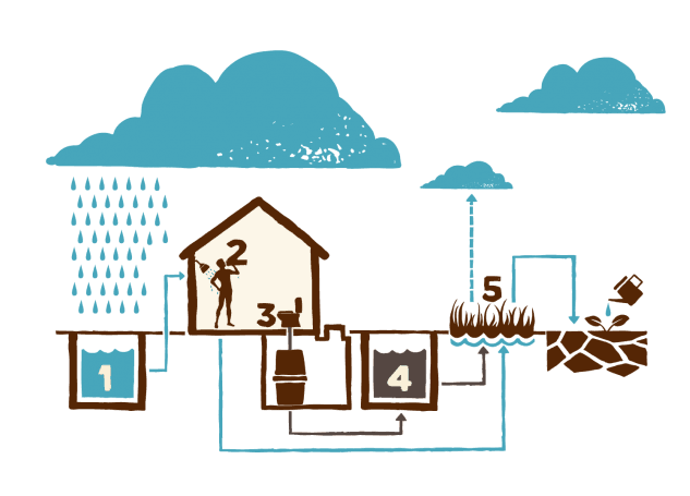 単に節水機器を導入するのではなく、水の取り入れから排水処理まで、敷地全体の循環を一つの仕組みとして設計している点が特徴です。[2]