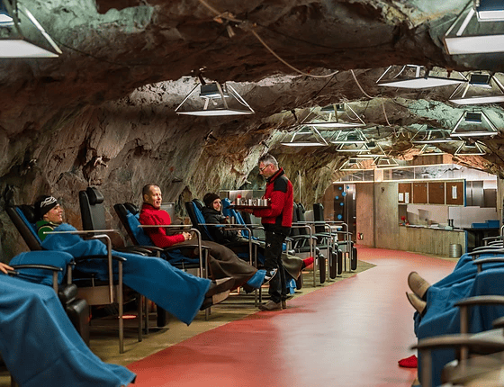 坑道内での過ごし方はシンプルです。訪問者は防寒着を身につけ、リクライニングチェアに横たわり、静かな環境の中で呼吸を整えながら一定時間を過ごします。