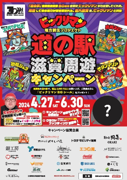 県内の道の駅を巡り買い物をすると、滋賀の名産品や観光スポットとコラボしたオリジナル「ビックリマンBIGシール」がもらえる仕組みです。