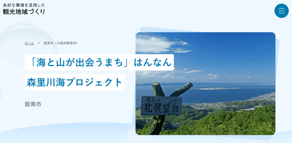 阪南市は、大阪府に位置し「海と山が出会うまち」という地理的特性を活かした環境保全と地域活性化の両立に取り組んでいます。