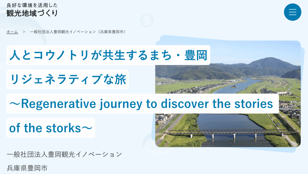 一般社団法人豊岡観光イノベーションは、兵庫県豊岡市で「人とコウノトリが共生するまち」をテーマに、リジェネラティブな旅の創出に取り組んでいます。