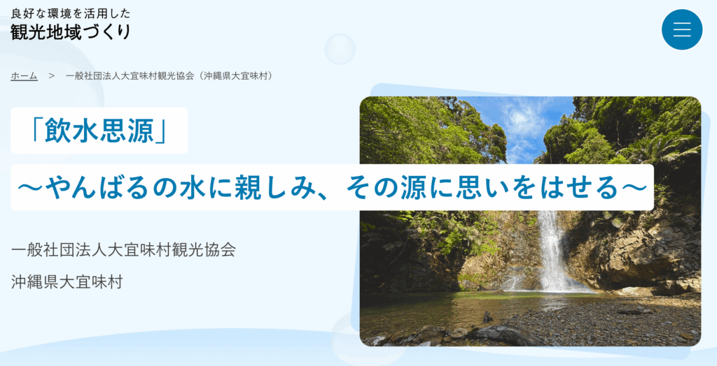 沖縄県大宜味村「飲水思源」~やんばるの水に親しみ、その源に思いをはせる~「平南川ター滝」を中心に、持続可能な観光情報の発信やオーバーツーリズム抑制の制度設計を行う。