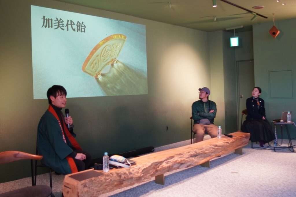 琴平から登壇したのは、五人百姓 池商店の28代目、池龍太郎さん。金刀比羅宮の境内、69段目で「加美代飴」を売る五人百姓は、特別な許しを得て商いを続けてきた存在だ。池さんの言葉で印象的だったのは、「町のことを楽しく説明できる人を増やしたい」という一言だった。