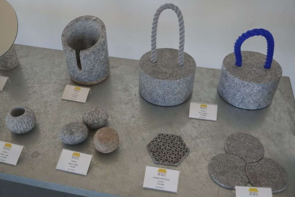 近年では、そうした伝統技術を継承するだけでなく、庵治石の採掘過程で生まれる産業廃棄物を活用し、新たなアート作品やプロダクトとして甦らせる取り組みも生まれている。新旧のアートが「資源の循環」と結びつきながら形を変えて再生し、まち全体を美しく彩っているのだ。