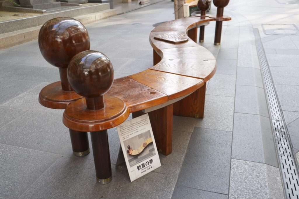 商店街の至る所に置かれるベンチ
