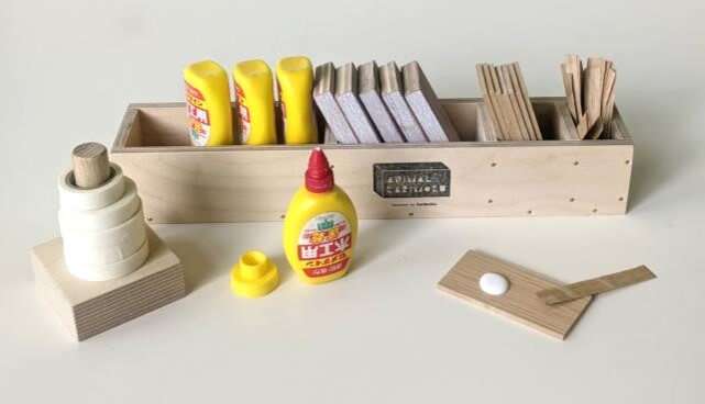のこぎりや釘を使わず、サンドペーパーで磨いて、木工用接着剤で貼り合わせるシンプルな工程。